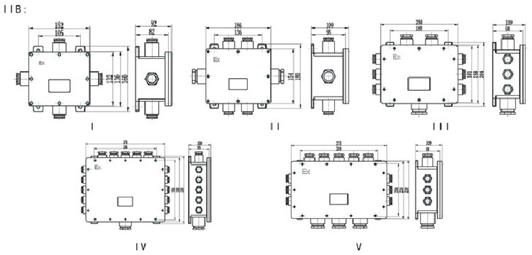 BJX防爆接線箱外形及安裝尺寸:
